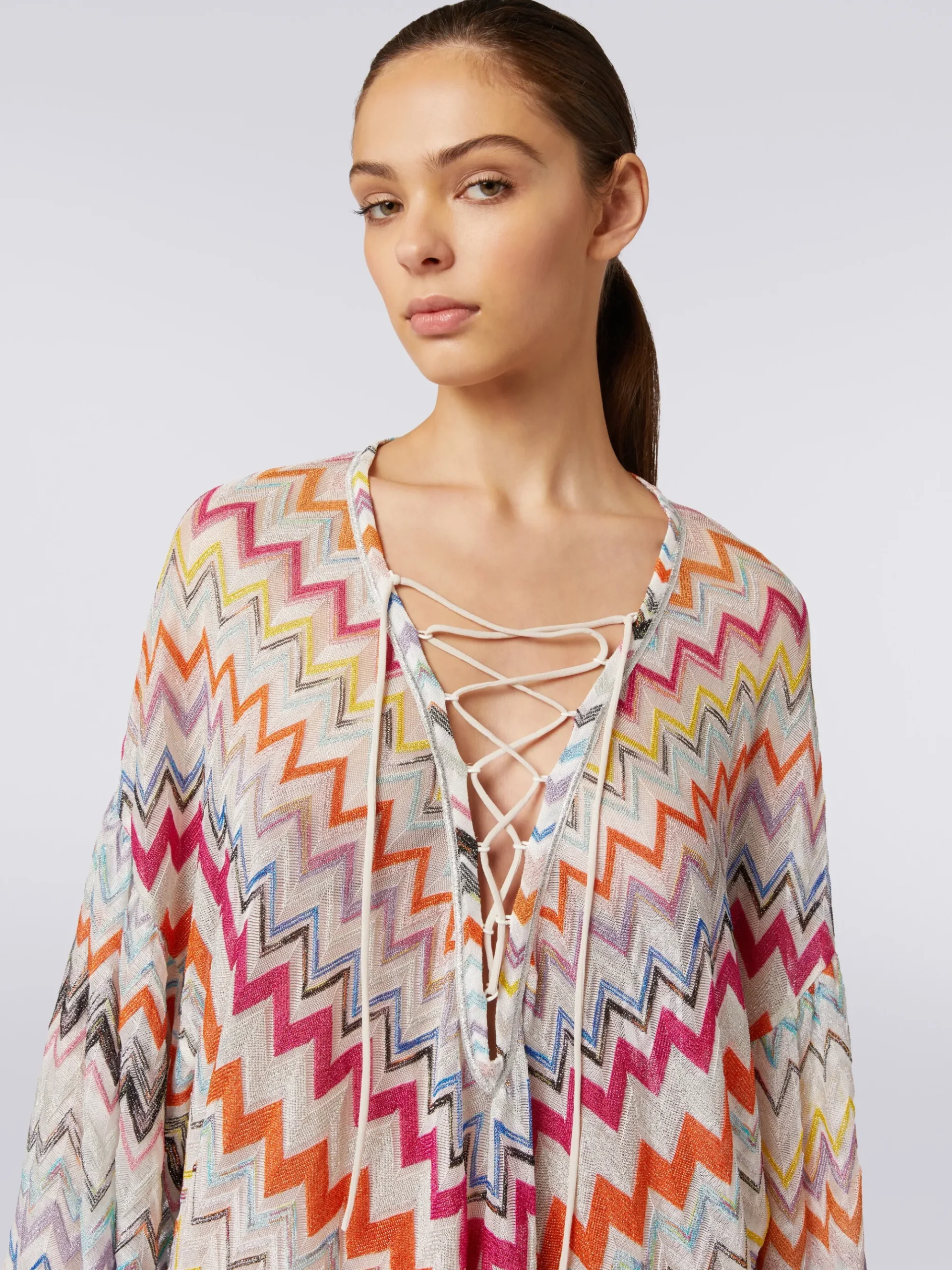 Caftan court avec motif à zig-zag et lurex