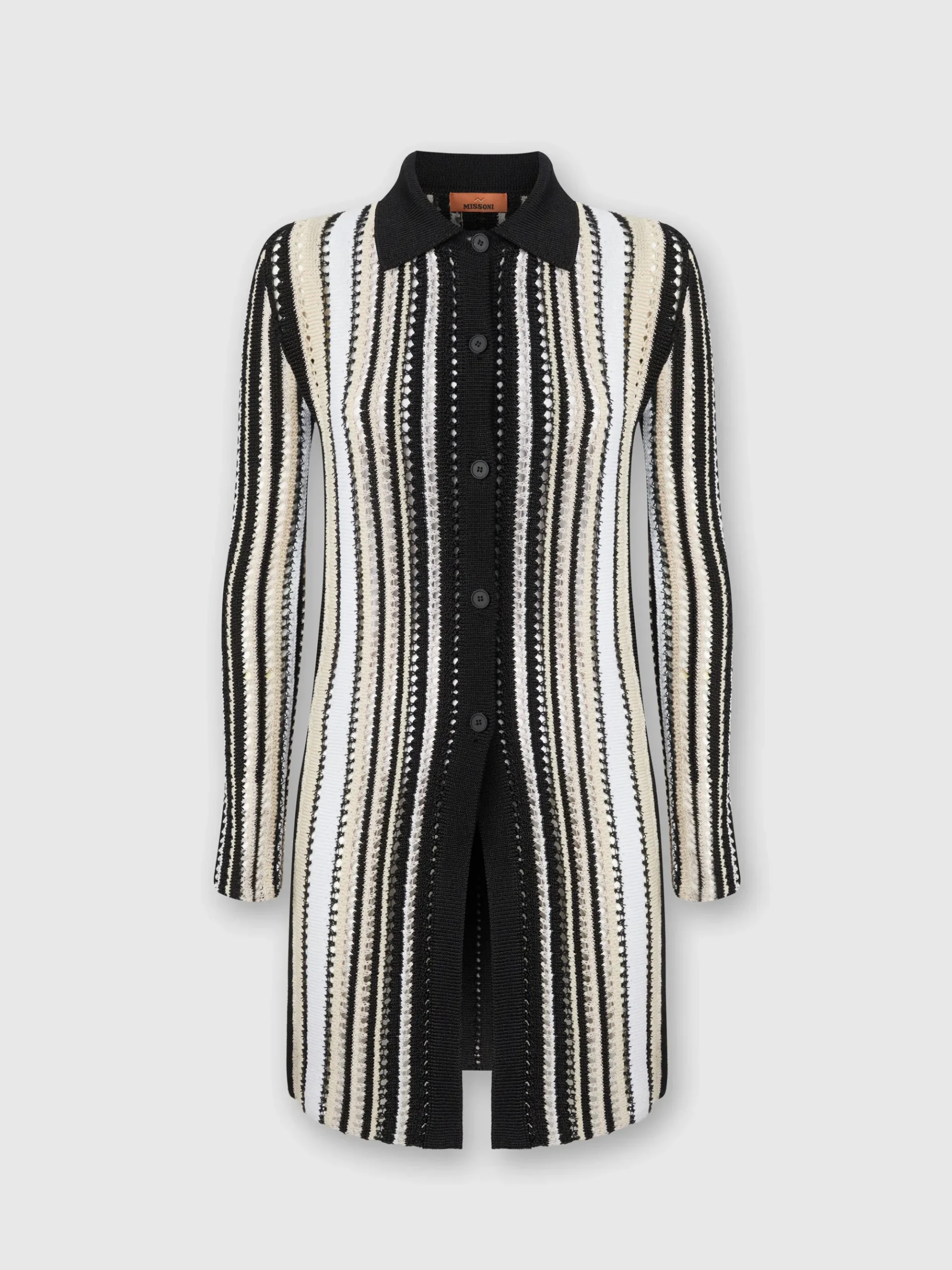 Cardigan long rayé en crochet avec col chemise