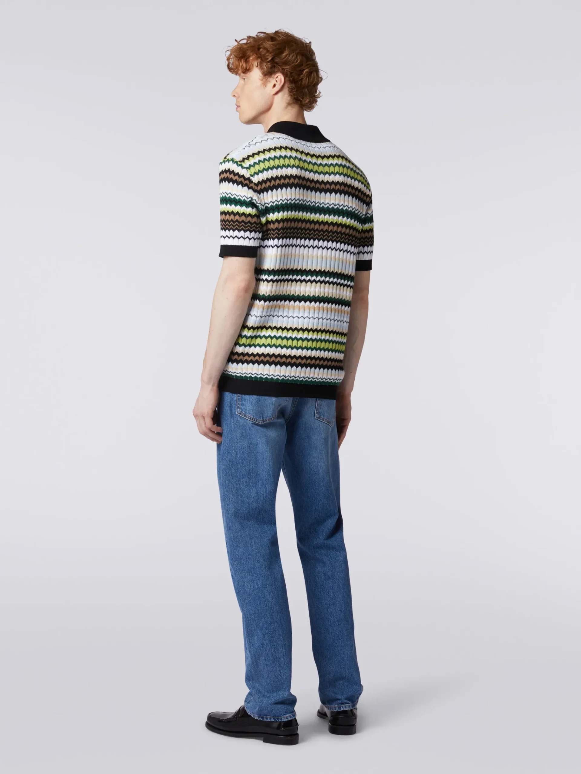 Chemise côtelée rayée en coton et viscose avec finitions contrastées