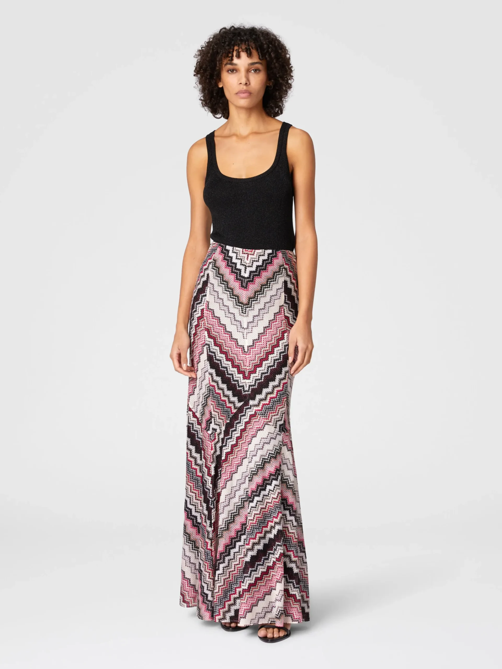 Jupe longue évasée à motif zigzag dentelé lamé