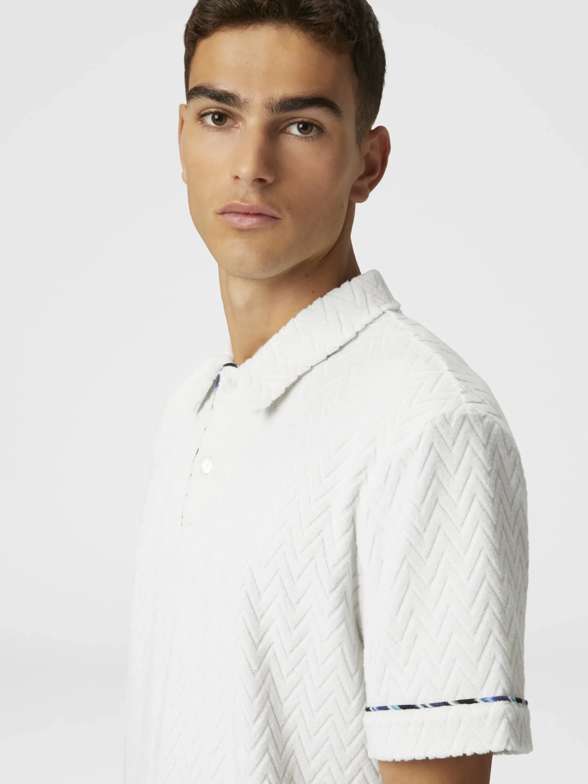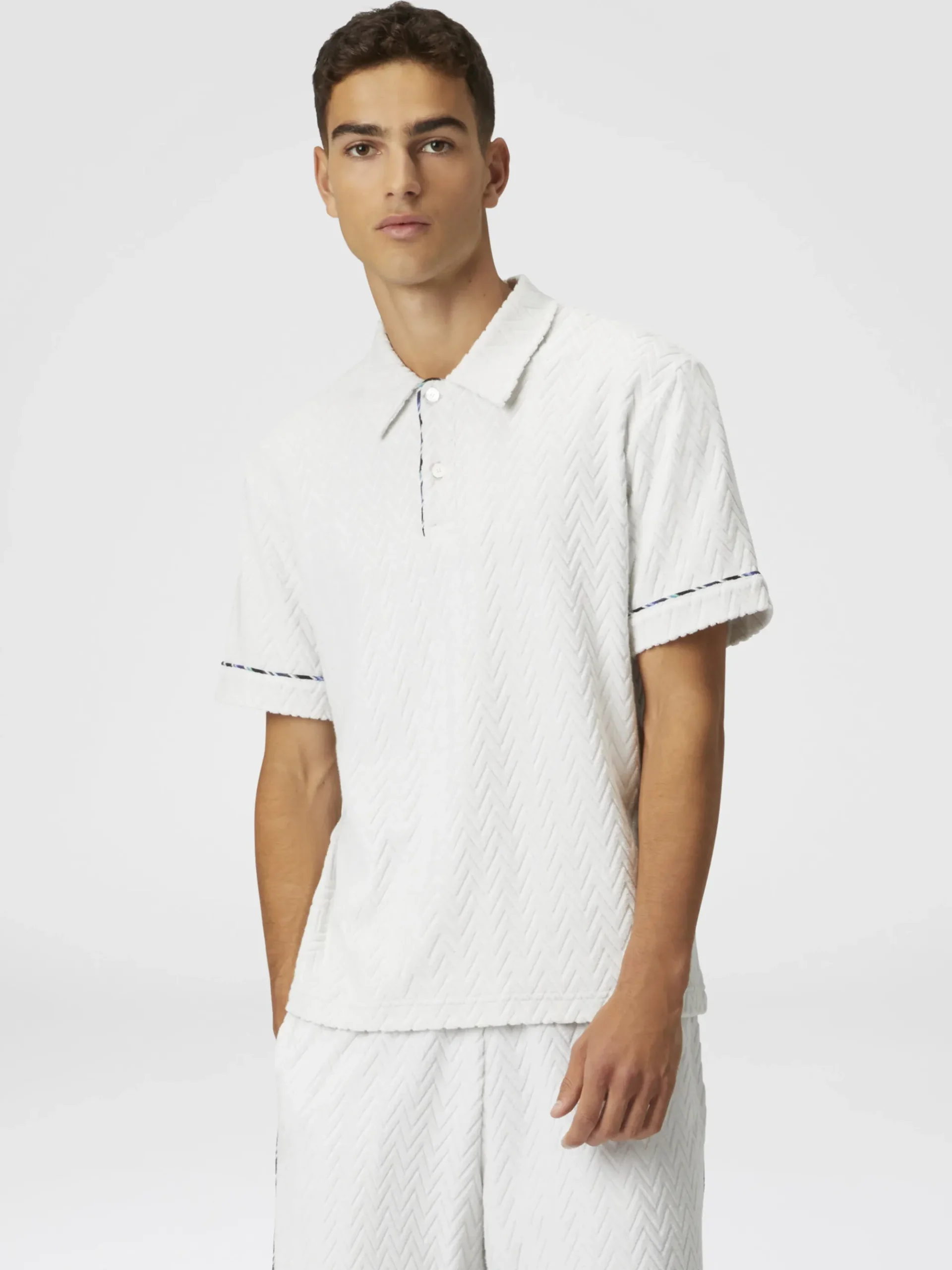Polo en éponge de coton zigzag avec passepoil contrasté