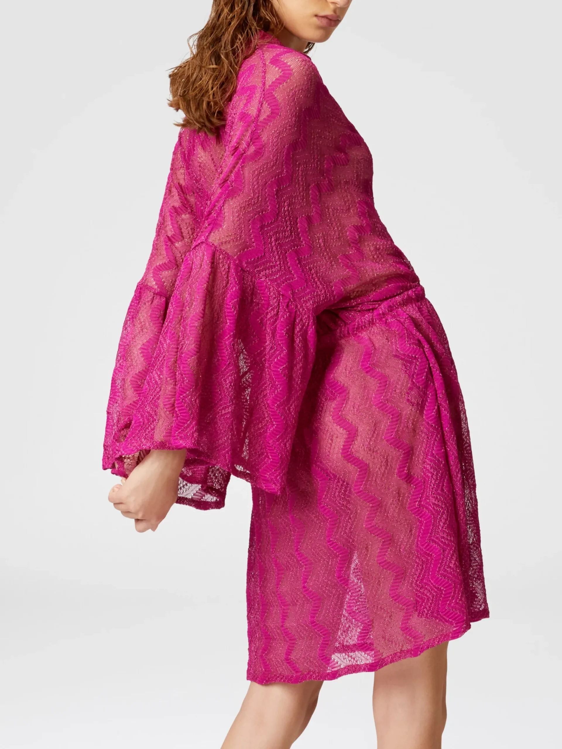 Robe couvrante en viscose lamé zigzag à manches larges