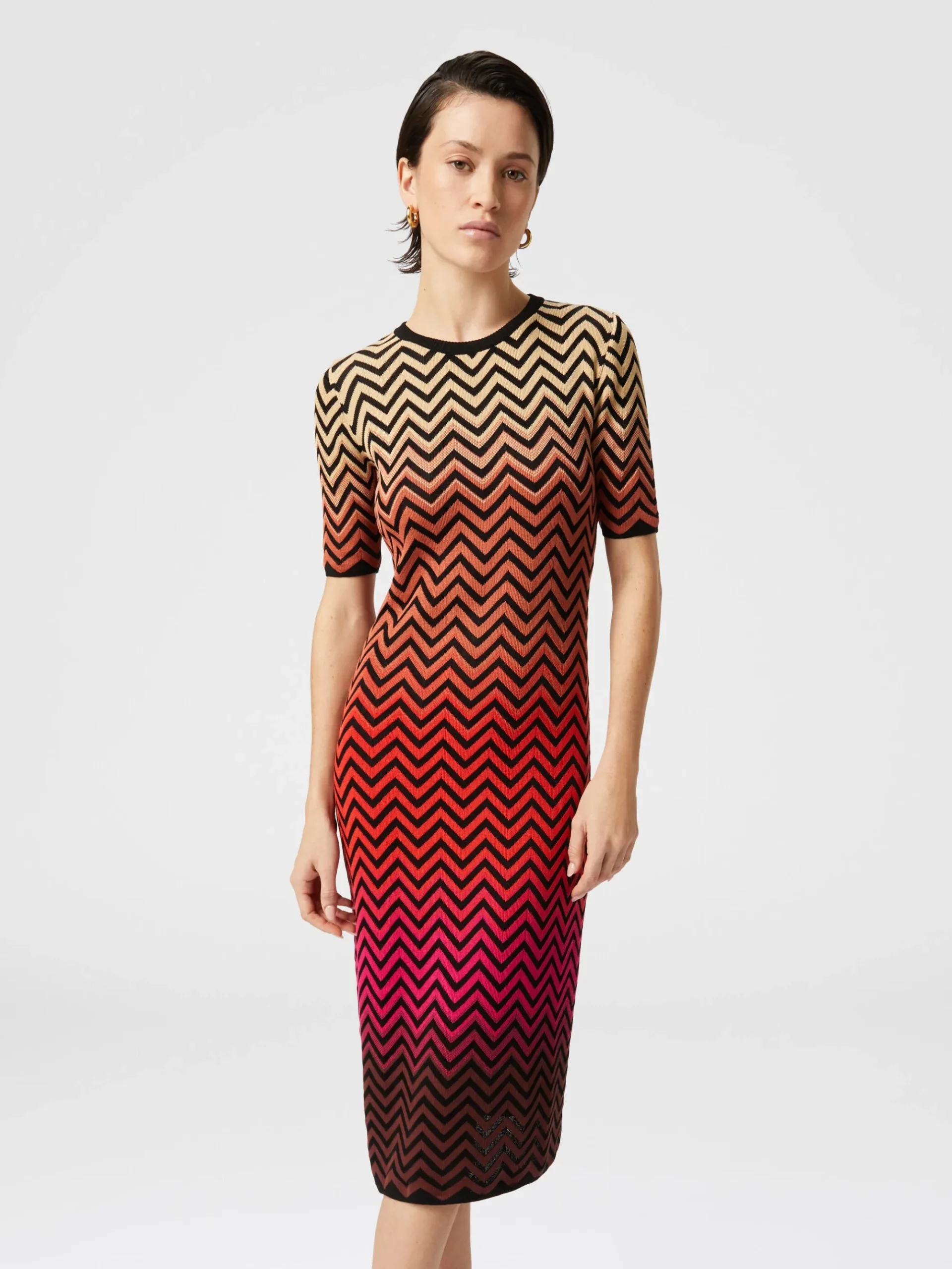 Robe midi dégradée à motif chevron