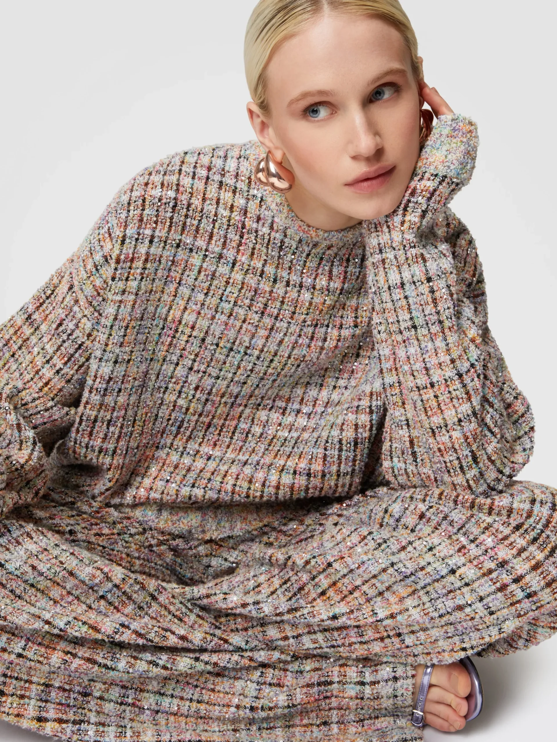 Sweat à col rond à carreaux bouclé à sequins