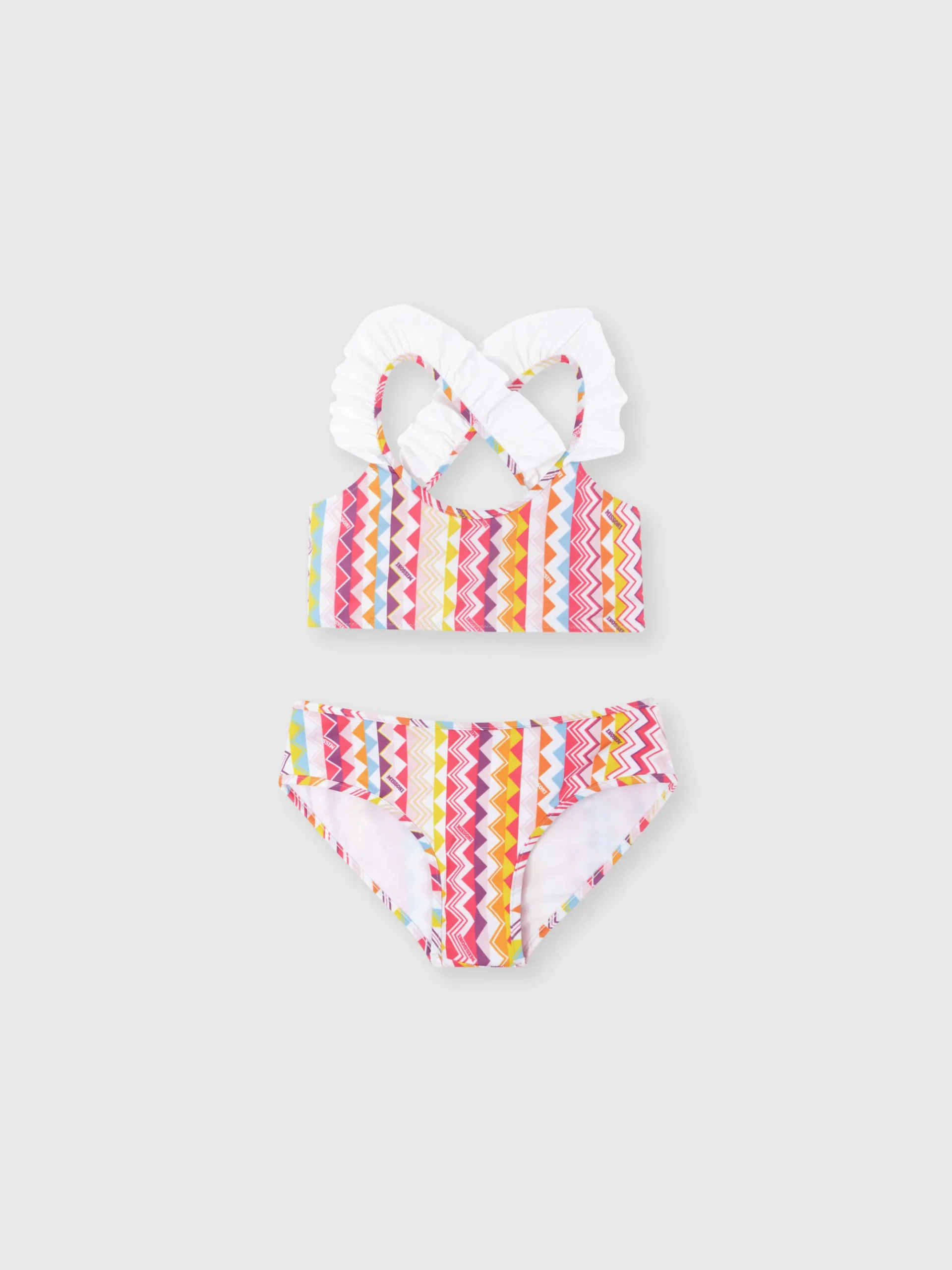 Bikini avec haut à imprimé zig zag et volants.