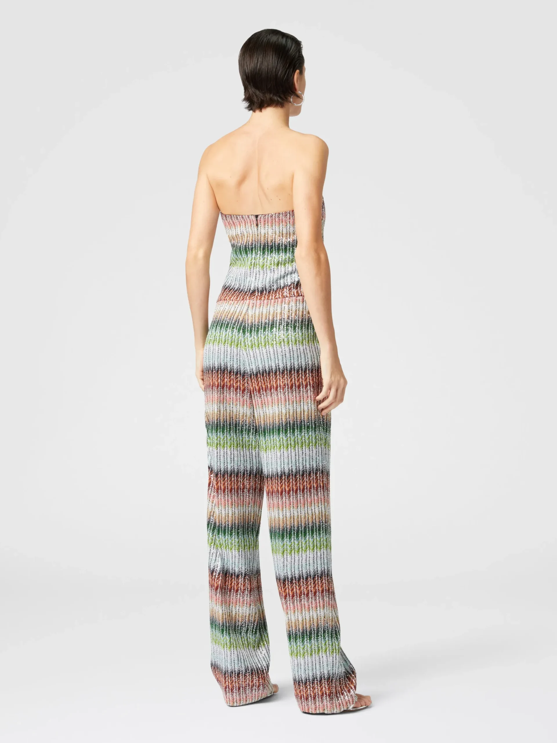 Combinaison bustier longue en maille zigzag dégradée à sequins
