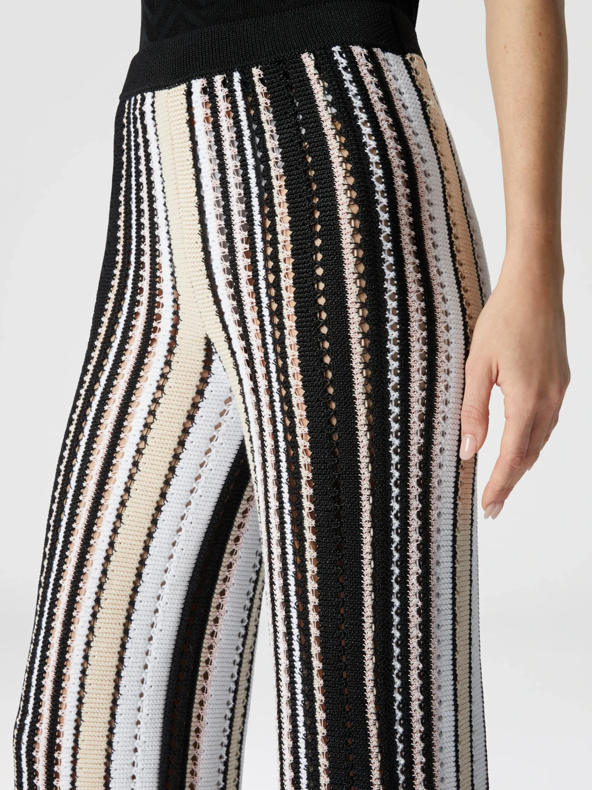 Pantalon droit en crochet rayé