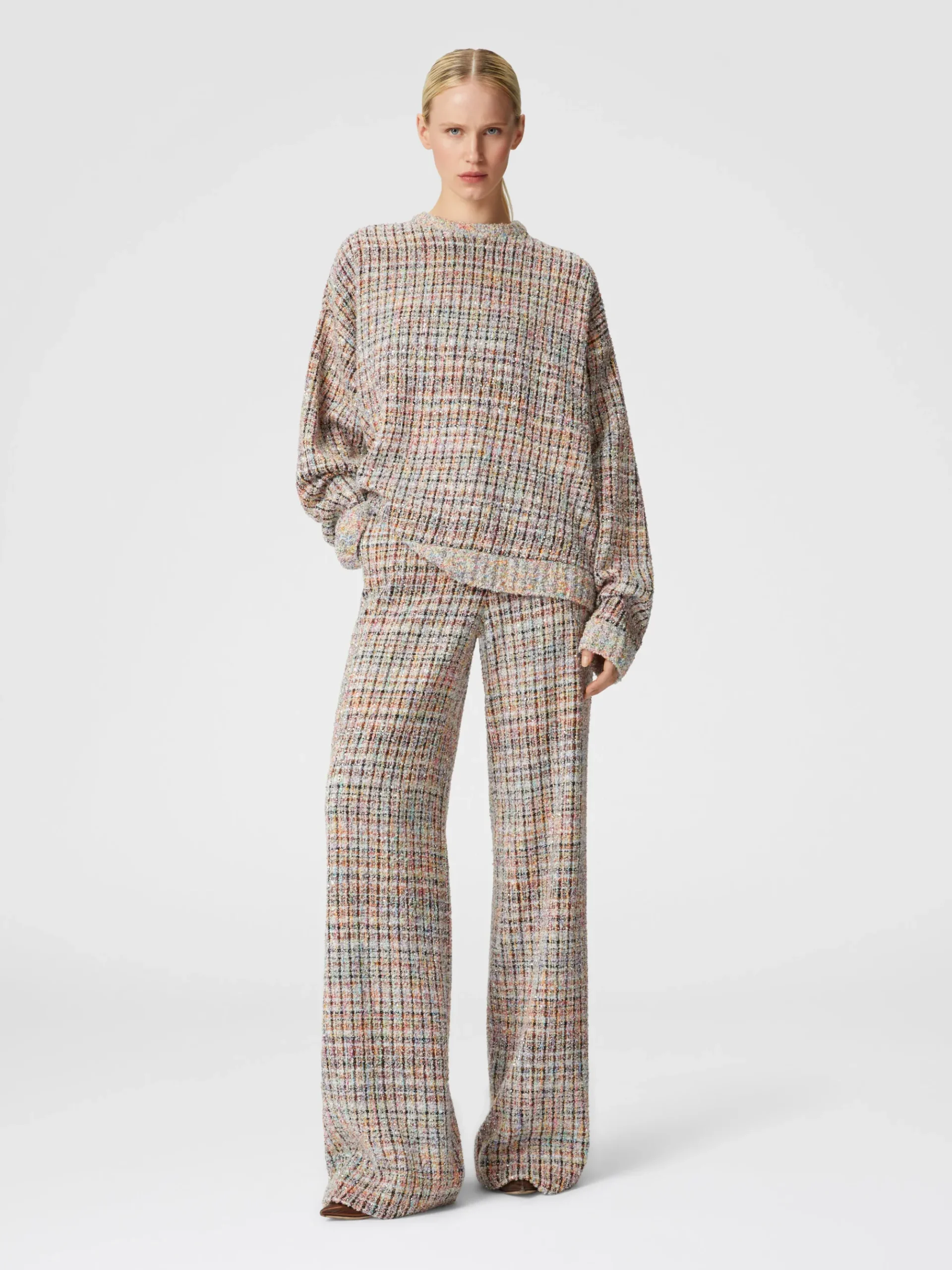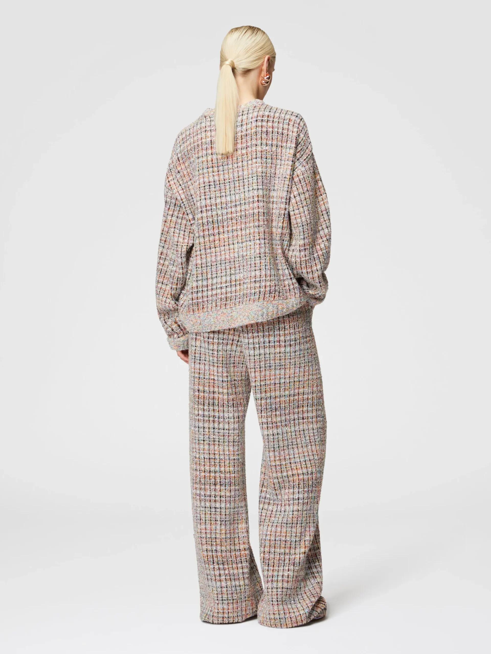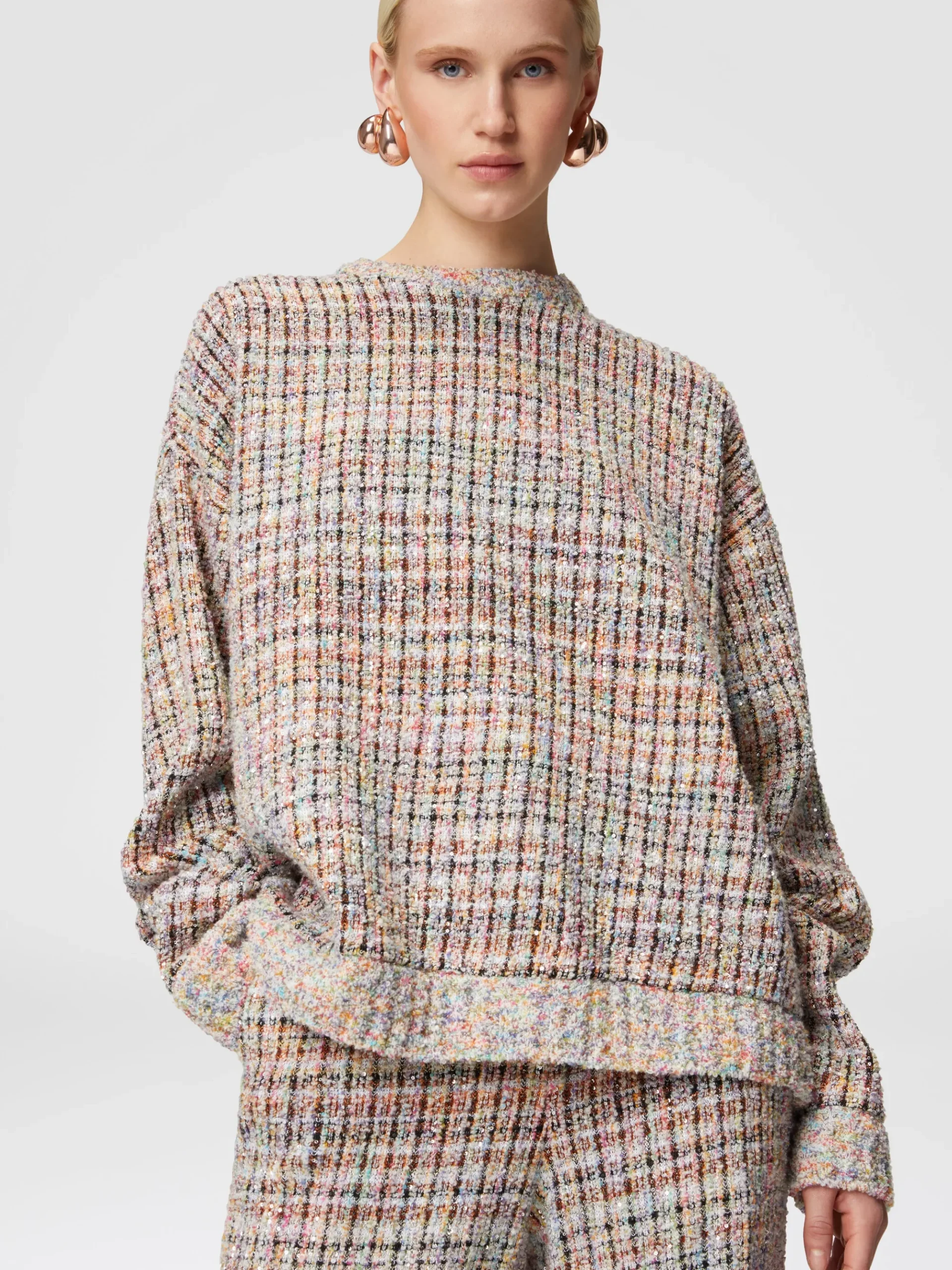 Sweat à col rond à carreaux bouclé à sequins